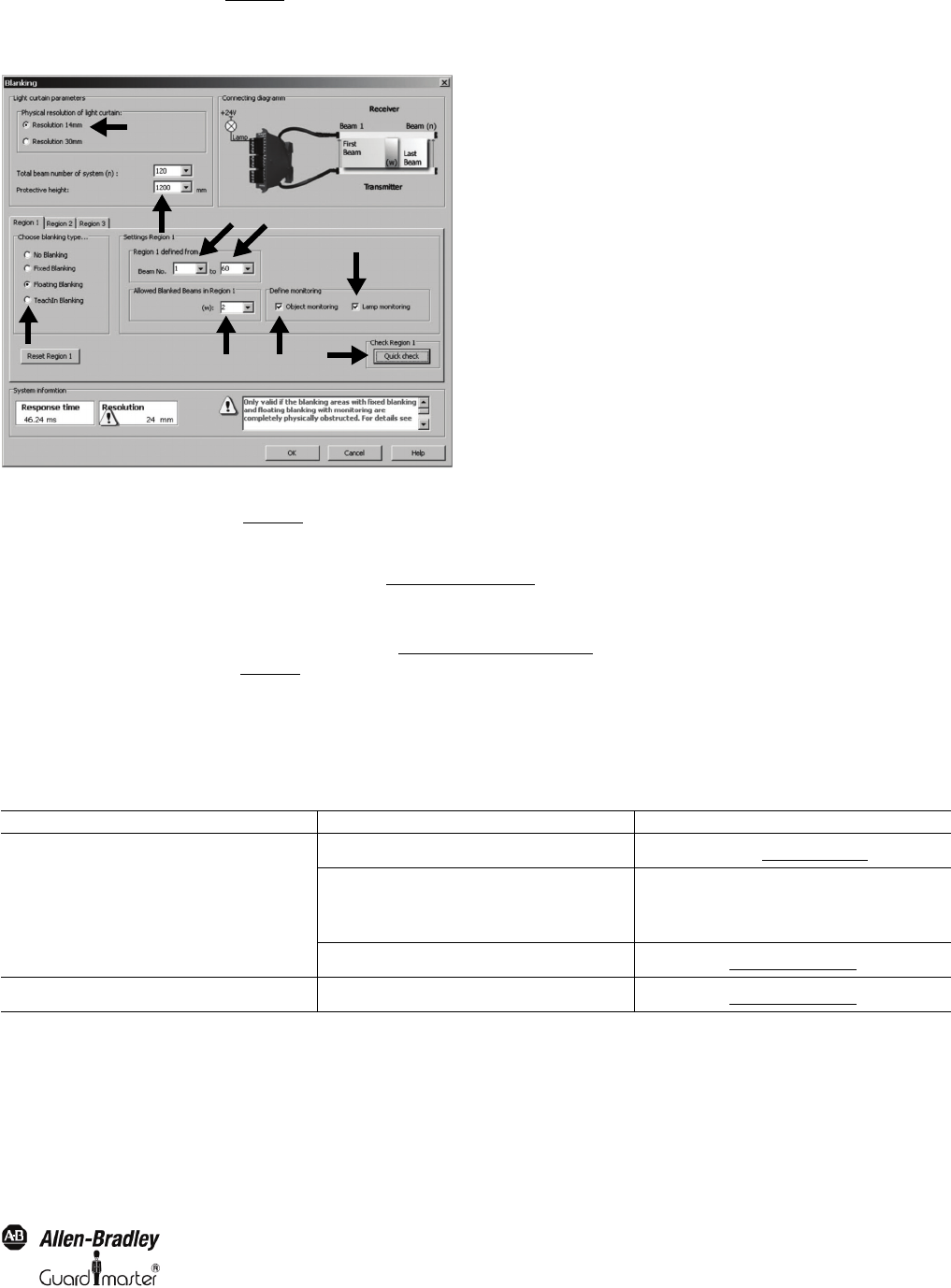 object monitoring or without object monitoring (7). Finish the blanking configuration for this region by clicking on the Quick check button.
