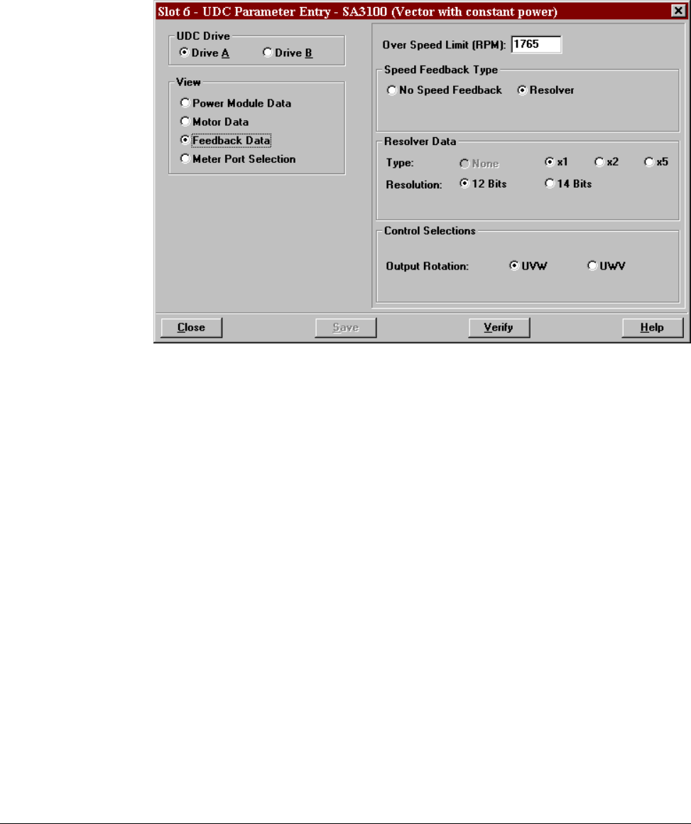Figure 2.7 – Feedback Data Parameter Entry Screen (Vector with Constant Power)