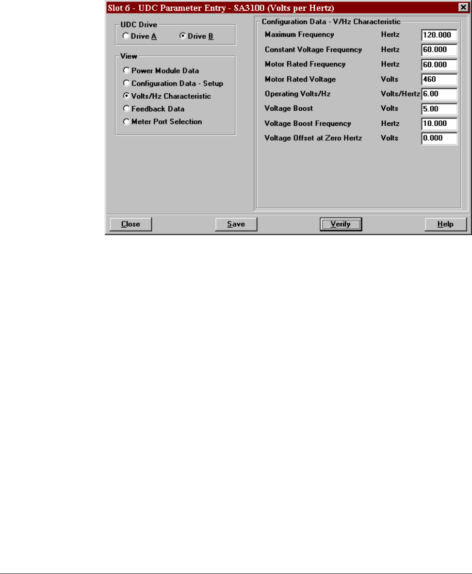 The V/Hz Characteristic parameter screen allows you to enter specific information
