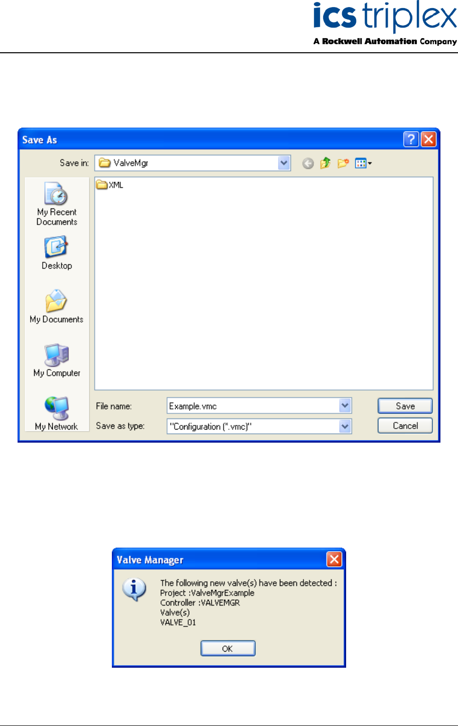 Once the tables have been created, the Valve Manager will prompt you to save the current