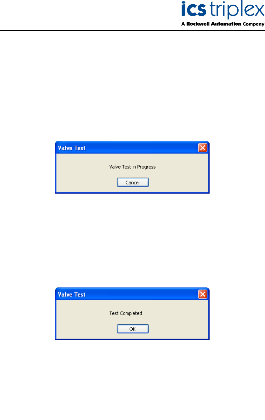 The “Valve Test” dialog is then update to indicate that the test completed, and the main window
