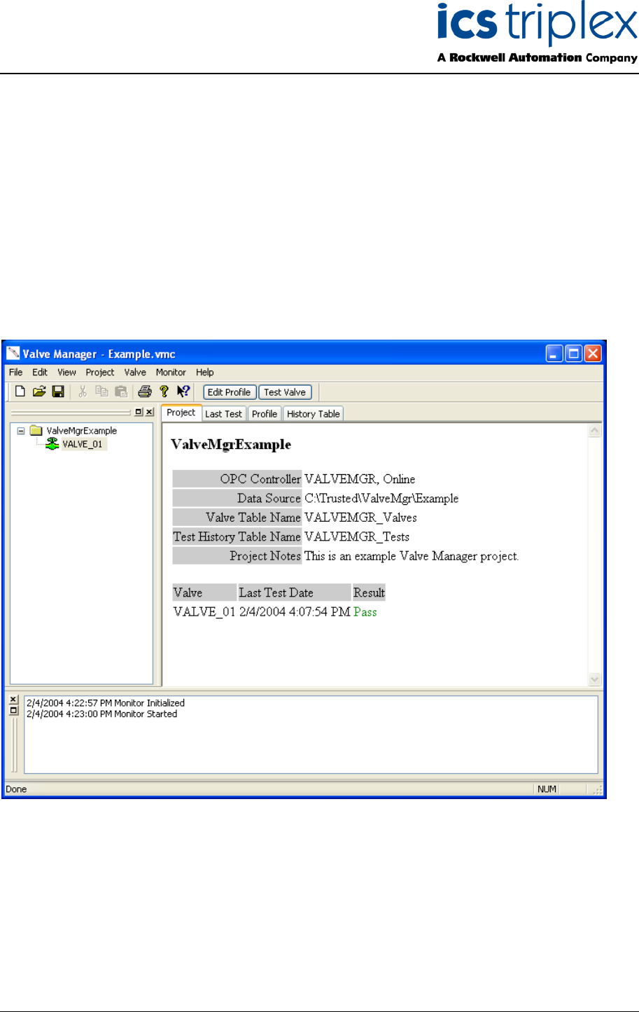 When a project is selected, only the “Project” view will be displayed. When a valve is selected, the