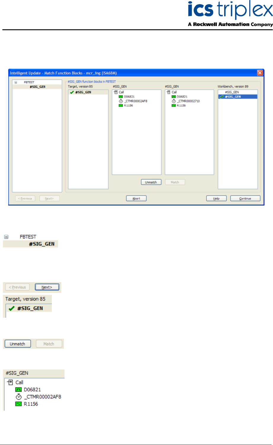 During compilation, any function blocks which cannot be automatically matched are presented in this