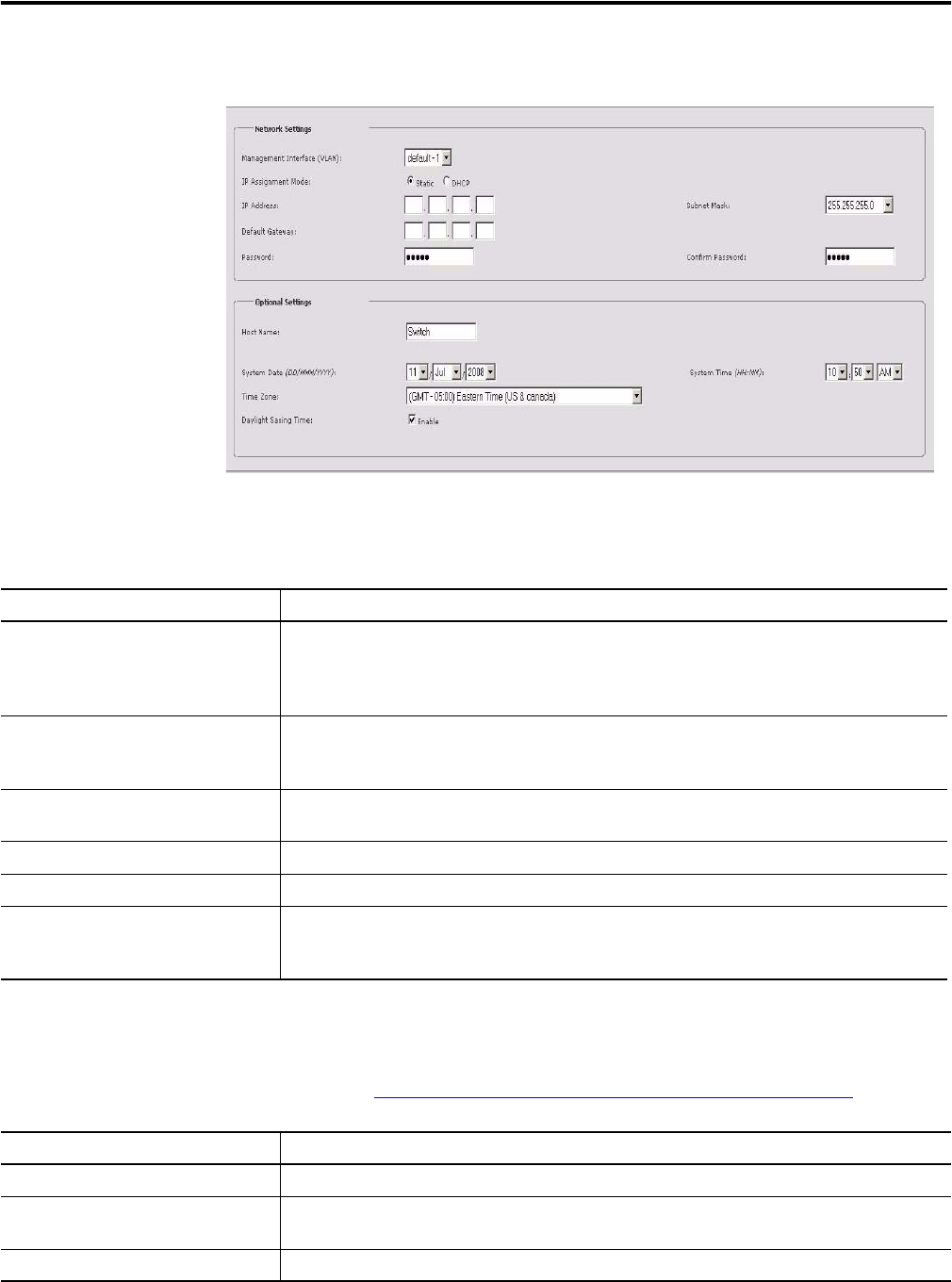 IP Address Enter the IP address for the switch. (Later, you can use the IP address to access the switch