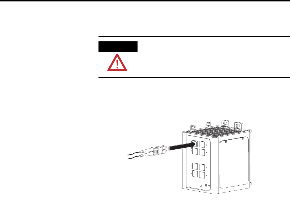 1. Insert a fiber optic cable with an LC connector into the 100BASE-FX