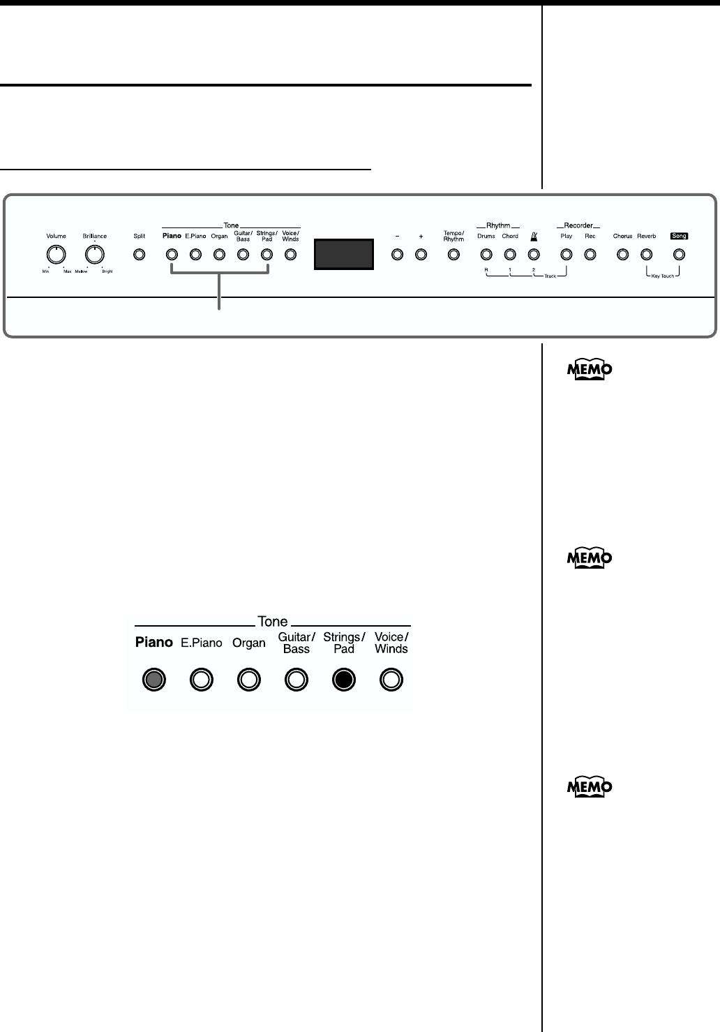 1. Press the [Piano] button and the [Strings/Pad] button at the
