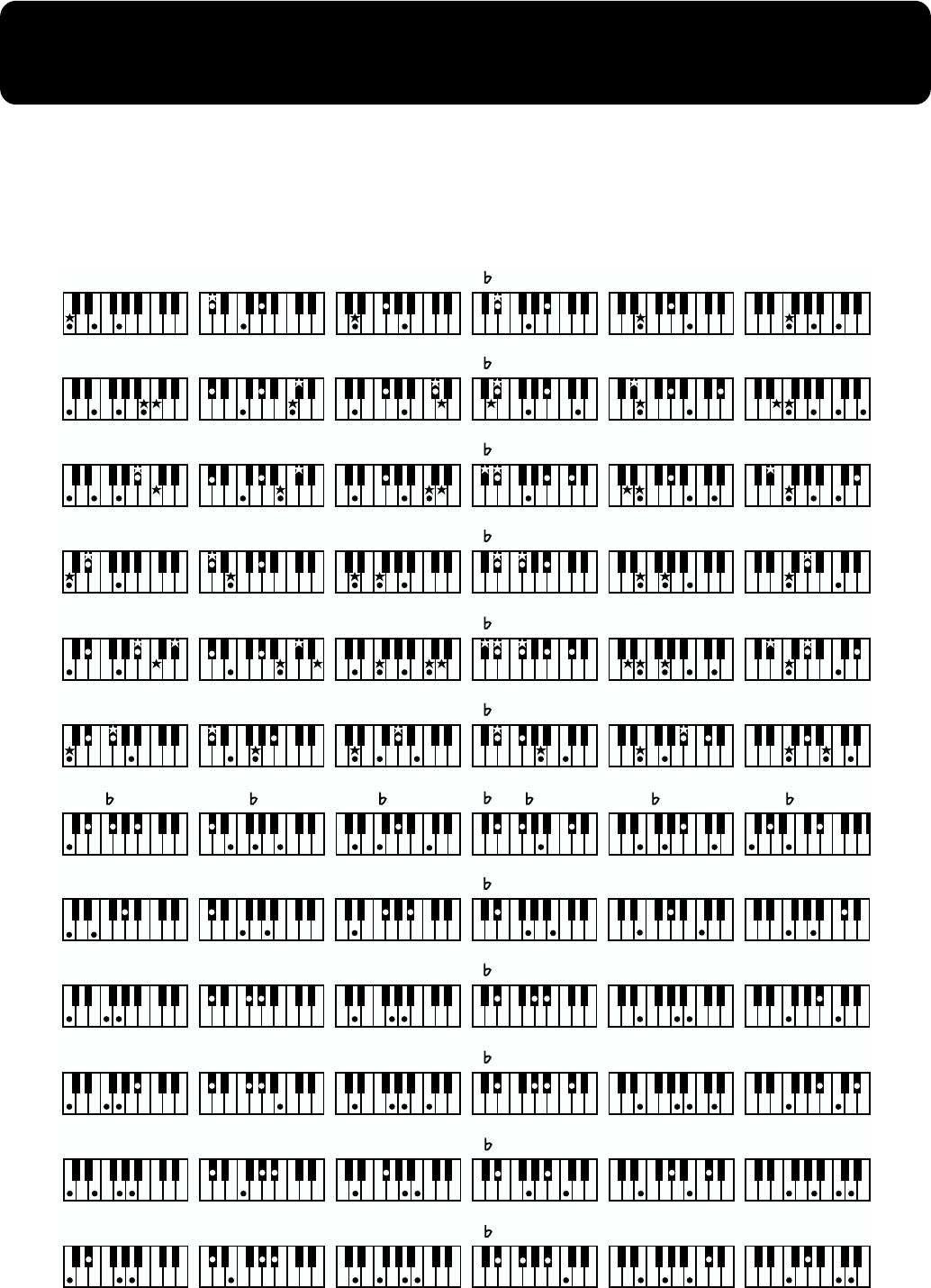 ★ symbol: Chords shown with an “★” can be played by pressing just the key marked with the “★”.