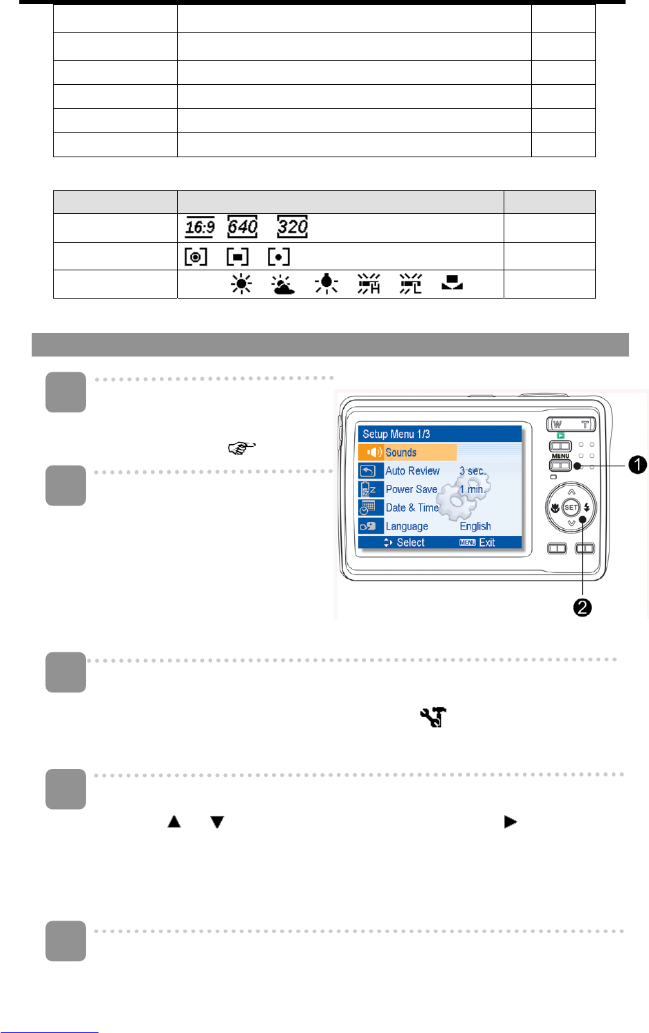 Setup menu