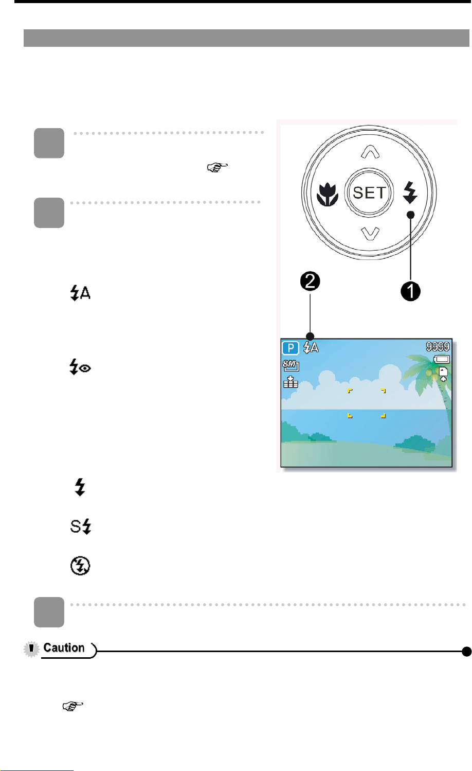 Press the flash button () to change
