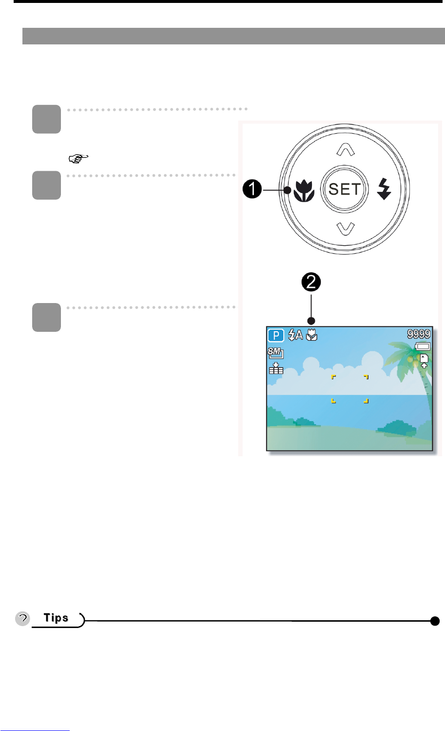 Your camera is equipped with a macro function that allows you to focus on very close