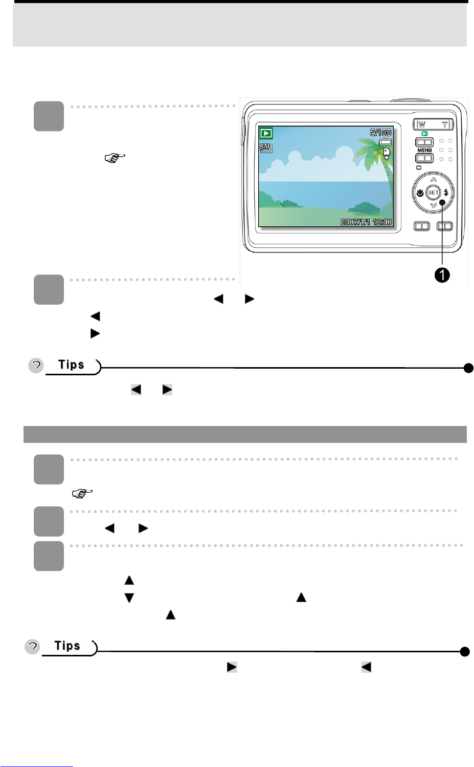 Turn the power on, and set the camera to the PLAYBACK mode
