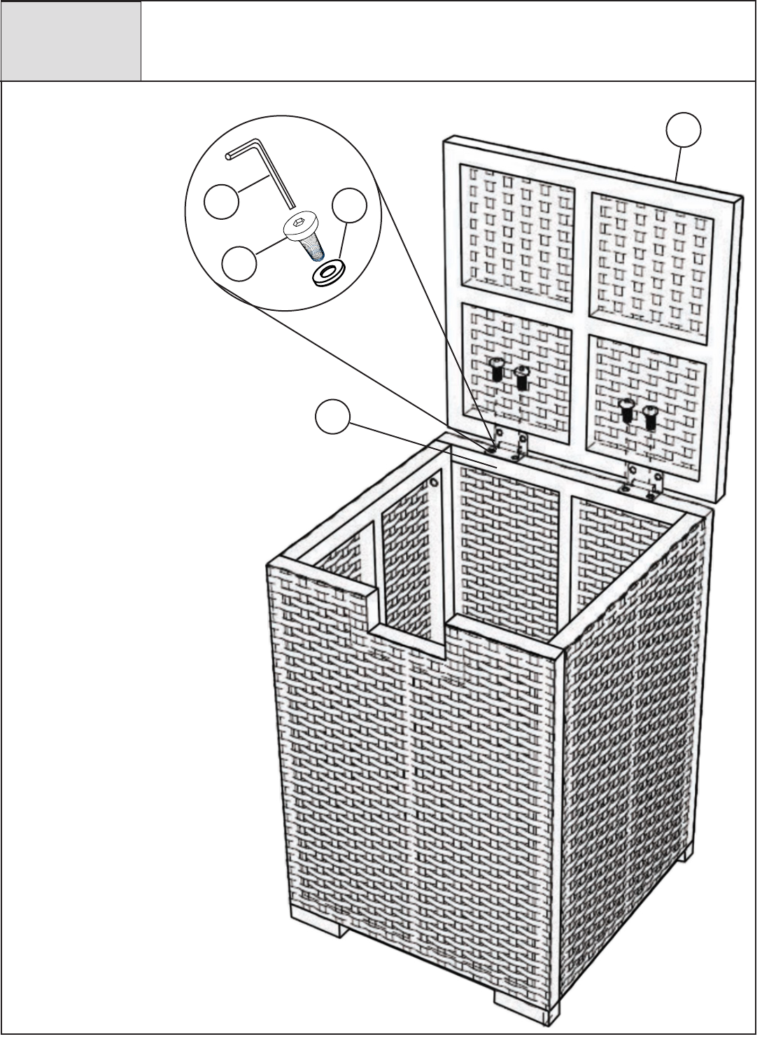 Attach panel (F) to the panel (C) using 4pcs of Bolts (1) with Allen W