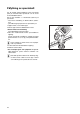 Inställning av sköljmedelsdosering 3 Ändra bara doseringen när det på glas och disk syns ränder, mjölkaktiga fläckar (ställ in doseringen lägre) eller intorkade vattenfläckar (ställ in doseringen högre) (se avsnitt „När diskresultatet inte är tillfredsställande“). Doseringen kan ställas in från 1-6. I fabrik är doseringen förinställd på “4”. 1. Öppna diskmaskinens lucka. 2. Tryck på låsknappen till sköljmedelsfacket. 3. Öppna locket. 4. Ställ in dosering. 5. Tryck på locket tills det låses. 6.