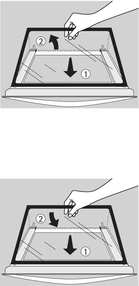 1. Työnnä ylempi lasilevy viistosti ylhäältä luukun