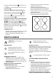 Display Beskrivning PowerBoost är på. + siffra Ett fel har uppstått. En kokzon är fortfarande varm (restvärme). Lås /Barnsäkring på ugnen är på. Kokkärlet är felaktigt eller för litet, eller inget kokkärl är placerat på kokzonen. Automatisk avstängning är på. RESTVÄRMEINDIKERING VARNING! Risk för brännskador från restvärme. Induktionskokzonerna skapar den värme som behövs för tillagningen direkt i kokkärlets botten. Glaskeramiken värms upp av restvärmen hos kokkärlet.