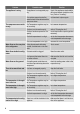 Problem The appliance is noisy. Possible cause Solution The appliance is not supported prop- Check if the appliance stands stable erly. (all feet and wheels should be on the floor). Refer to "Levelling". The cushion spacers located bePut them back in place again. tween the back of the cabinet and the pipes come loose. The compressor runs contin- The Temperature regulator may be set incorrectly. uously. Set a warmer temperature. The door is not closed correctly. Refer to "Closing the door".