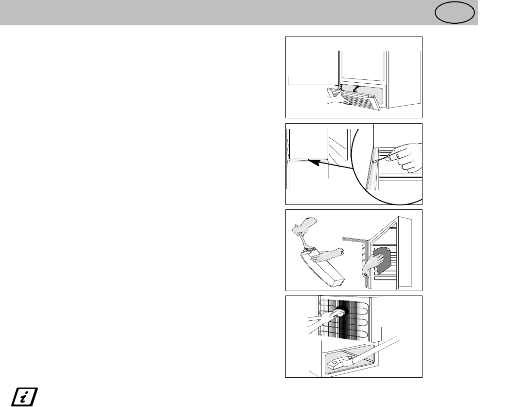 "Ilmanvaihtosäleikön irrotus") ja imuroi kaapin alla