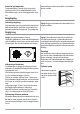 Problem Mulig årsak Løsning Maten er for varm. La maten avkjøle seg til romtemperatur før du legger den inn i apparatet. Romtemperaturen er for høy. Reduser romtemperaturen. Hurtigfrys-funksjonen er slått på. Se etter i "Hurtigfrys-funksjon". Det renner vann på bakveggen av kjøleskapet. Under den automatiske avrimings- Dette er normalt. prosessen tiner rimet på bakveggen. Det renner vann inn i kjøleskapet. Vannavløpet er tilstoppet. Rengjør vannavløpet.