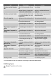 Fejl Mulig årsag Der løber vand ind i køleska- Afløbet til afrimningsvand er tilstoppet. bet. Madvarer blokerer, så vandet ikke kan løbe ned i vandbeholderen. Løsning Rens afløbet. Sørg for, at madvarerne ikke rører bagpladen. Der løber vand ud af skabet. Afrimningsvandet løber ikke fra aflø- Sæt afløbet til afrimningsvand på forbet og ned i beholderen oven over damperbeholderen. kompressoren. Der er for meget rim. Madvarerne er ikke pakket godt nok Pak madvarerne bedre ind. ind.