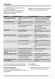 Felsökning Försiktighet Ta ur stickkontakten från eluttaget innan felsökning påbörjas. Endast en behörig elektriker eller annan kompetent person får utföra felsökning som inte beskrivs i denna bruksanvisning. Problem Viktigt Vissa ljud hörs under normal användning (kompressor, cirkulation av köldmedel). Möjlig orsak Åtgärd Produkten bullrar. Produkten har inte installerats korrekt. Kontrollera att produkten står stadigt (alla fötterna skall ha kontakt med golvet). Produkten fungerar inte.