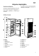 FI Ohjeit a k ä ytt äjälle Yleistietoa laitteesta Tämä kaappi on jää-pakastinyhdistelmä, jossa on yksi kompressori. Pakastin on sijoitettu laitteen yläosaan. Laite täyttää sille asetetut ilmastoluokkastandardin vaatimukset. Laitetta koskeva ilmastoluokka on mainittu laitteen arvokilvessä. Laite soveltuu pakasteiden säilyttämiseen ja pakastamiseen. Pakastusteho on mainittu laitteen arvokilvessä. Laitteen kuvaus 1 2 3 11 4 12 16 5 6 13 7 14 17 18 8 15 19 9 20 10 A - Pakastin B - Jääkaappi 1.