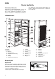 FI Ohjeita käyttäjälle Yleistietoa laitteesta Tämä kaappi on jää-pakastinyhdistelmä, jossa on yksi kompressori. Pakastin on sijoitettu laitteen yläosaan. Laite soveltuu pakasteiden säilyttämiseen ja pakastamiseen. Pakastusteho on mainittu laitteen arvokilvessä. Laite täyttää sille asetetut ilmastoluokkastandardin vaatimukset. Laitetta koskeva ilmastoluokka on mainittu laitteen arvokilvessä. Laitteen kuvaus A - Pakastin B - Jääkaappi 1. Kansilevy 2. Jääpalalokerikko 3. Pakastinlokeron lankahylly 4.