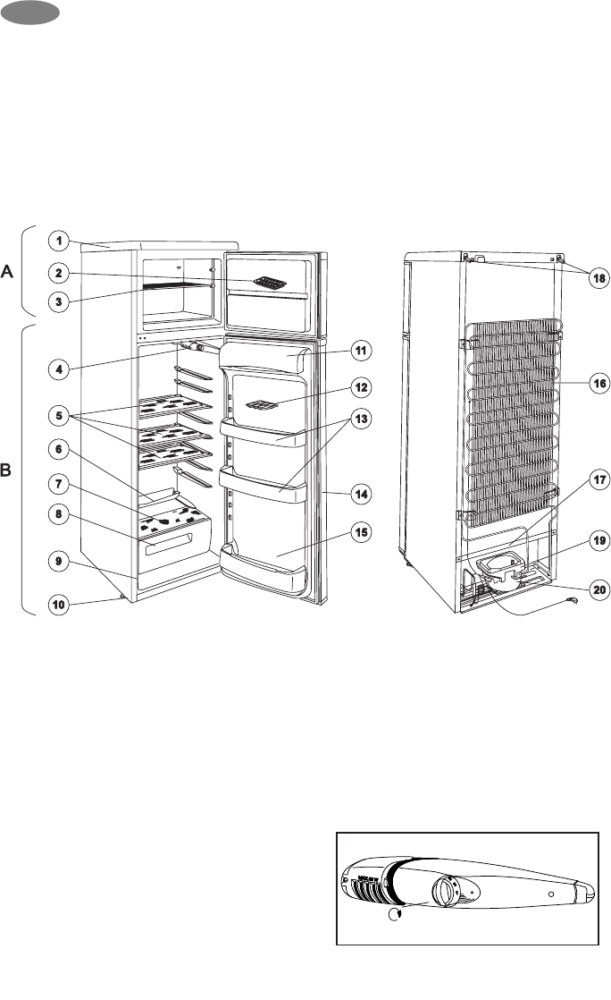 „0” medurs enligt illustration. På läge „0” är kylskåpet