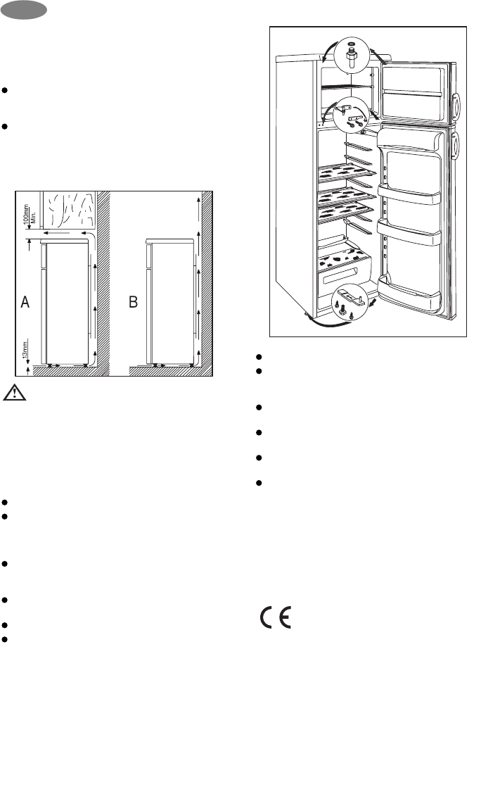 Skåpet ska inte stå i direkt solljus eller i närheten av