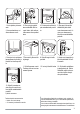 2 1 3 1. Irrota pistoke pistorasiasta. 2. Avaa pakastimen ovi. Avaa saranan ruuvit. 3. Ota ovet pois paikal4. Poista ruuvin reikien tultaan vetämällä niitä kepat vastakkaiselta puolelvyesti siten, että aukiruu- ta. vattu sarana irtoaa paikaltaan. 5. Ruuvaa irti kumpikin säädettävä jalka sekä oven alasaranan ruuvit. Irrota oven alasarana ja kiinnitä se vastakkaiselle puolelle. 2 3 1 6. Avaa ja irrota pohjassa 7. Ruuvaa irti yläoven kiin- 8. Kiinnitä tappi toiselle kauempana oleva ruuvi ja nitystappi.