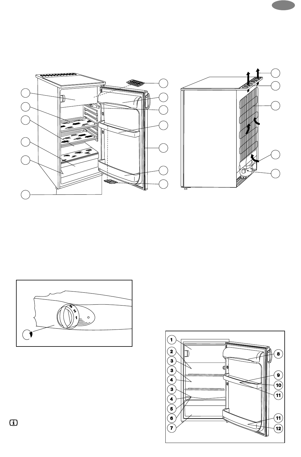 0 medurs enligt illustration. På läge 0 är kylskåpet ur drift.