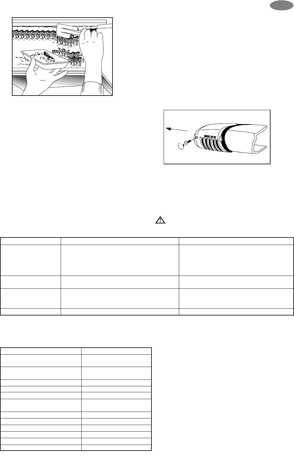 glödlampan bytas ut. (Glödlampans modell: Mignon 322, 230 V, 15 W, E 14