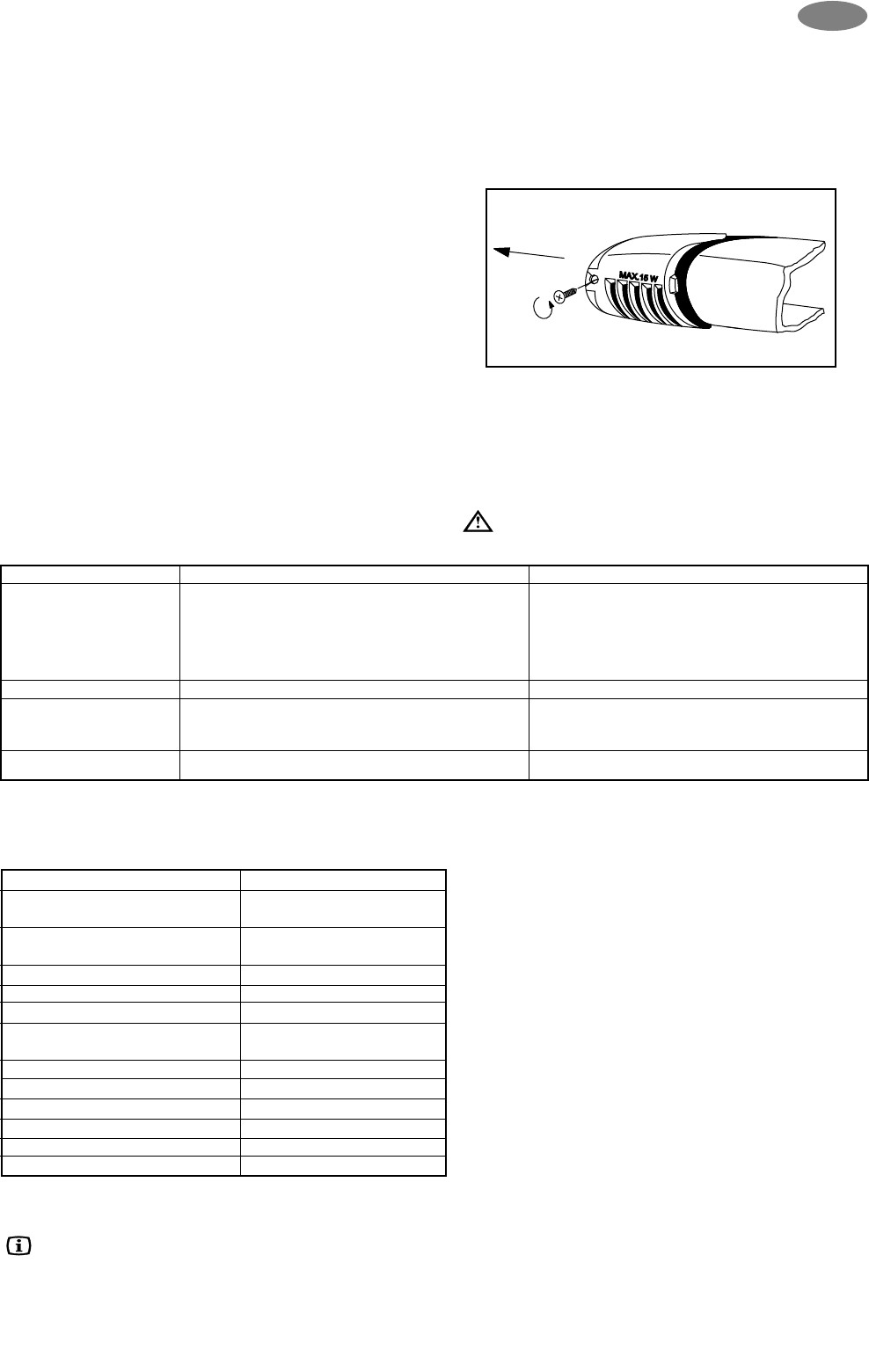 Vaihda lamppu uuteen, lampun teho 15 W, kanta E14.