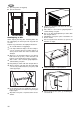 SE A. B. placering under ett väggskåp. placera fristående. Omhängning av dörr Skulle skåpets placering eller hantering kräva det, kan omhängning av dörren bytas från höger till vänster sida. Följande steg skall utföras med hjälp av illustration: Ta ut stickkontakten ur vägguttaget. Luta skåpet bakåt försiktigt så att inte kompressorn rör vid golvet. En person håller skåpet i en säker position medan den andre fortsätter med dörrbytet.
