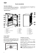FI Ohjeita käyttäjälle Yleistietoa laitteesta Tämä kaappi täyttää ilmastoluokan standardivaatimukset. Ilmastoluokan kirjainsymboli (N) on nähtävissä myös kaapin arvokilvessä. Tämä kaappi on kotitalouskäyttöön tarkoitettu jääkaappi, jossa on neljän tähden pakastelokero. Jääkaappi elintarvikkeiden säilyttämiseen, pakastelokero pienimuotoiseen pakastamiseen sekä jääpalojen tekemiseen. Laitteen kuvaus 15 8 16 1 9 2 17 10 3 11 4 12 5 18 13 6 19 14 7 1. 2. 3. 4. 5. 6.