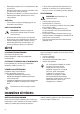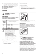 6. 7. 8. 9. min. 100 mm 15 mm Montera gångjärnet på motsatta sidan. Skruva i den högra foten. Skruva loss skruvarna till dörrens övre gångjärn. Avlägsna gångjärnet. Flytta över sprinten i pilens riktning. Montera gångjärnet på motsatta sidan. 15 mm 1 2 3 OMHÄNGNING AV DÖRR VARNING! Dra ur stickkontakten från eluttaget innan du påbörjar arbetet. FÖRSIKTIGHET! Vi rekommenderar att du ber någon om hjälp med att hålla ett fast grepp om dörren under arbetets gång. 10. Skruva fast gångjärnet. 1.