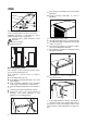 FI Irrota kansilevy ruuvaamalla ruuvit (2 kpl) kaapin takaosasta. Työnnä kansilevyä taaksepäin, ja nosta se paikaltaan. 2 1 Älä sijoita kaappia suoraan suoraan auringonpaisteeseen, tai lämmönlähteen, kuten lieden viereen. Jääkaappin ilmankierto on suunniteltu niin, että se voidaan sijoittaa suoraan seinää vasten. Varmista kaapin riittävä ilmankierto kuvan mukaisesti. A: Kalusteisiin sijoitettuna B: Vapaasti sijoitettuna Irrota yläsaranan ruuvit (2 kpl). Siirrä yläsaranan tappi nuolen osoittamalla tavalla.