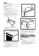 SE Omhängning av dörr Skulle skåpets placering eller hantering kräva det, kan omhängning av dörren bytas från höger till vänster sida. Följande steg skall utföras med hjälp av illustration: Ta ut stickkontakten ur vägguttaget. Luta skåpet bakåt försiktigt så att inte kompressorn rör vid golvet. En person håller skåpet i en säker position medan den andre fortsätter med dörrbytet.