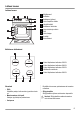 Laitteen kuvaus Laitteen kuvaus 2 3 4 5 6 1 7 8 4 11 9 3 2 1 10 1 2 3 4 5 6 7 8 9 10 11 Käyttöpaneeli Keittotaso Keittotason kytkimet Uunin lämpötilan säädin Lämpötilanäyttö Keittotason merkkivalo Uunin toimintojen valitsin Grilli Uunin lamppu Arvokilpi Kannatintasot 1 2 3 4 5 Yhden lämpöalueen keittoalue 1200 W Yhden lämpöalueen keittoalue 1800 W Yhden lämpöalueen keittoalue 1200 W Jälkilämmön merkkivalo Yhden lämpöalueen keittoalue 1800 W Keittotason keittoalueet 1 2 140 180 mm mm 180