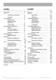 Sisällys Turvallisuus ……………………………… Liesi………………………………………… Pakkauksen purkaminen ……… Varusteet ……………………….. Turvavarusteet ………………………….. Kaatumiseste…………………… Keittotason suoja (lisävaruste) …………………… Luukun salpa……………….…… Ennen lieden käyttöönottoa……..………. Yleistä……………………… Puhdista varusteet…………… Kuumenna keittolevyt…………… Polta uunin suojarasva…….….... Toimintopaneeli……………………….. Merkkivalolamput ……………. Keittolevyt………………………….