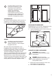 4 1 2 3 3. Ruuvaa auki oven alasaranan ruuvit. 4. Ota ovi pois paikaltaan vetämällä sitä kevyesti alaspäin. 5. Irrota yläsaranan tappi ja ruuvaa se sen jälkeen toiselle puolelle. 2 1 6. Sovita ovi yläsaranan tappiin. 7. Irrota alasarana. Käännä tappi ympäri nuolen suuntaisesti. 8. Kierrä ruuvi irti ja kiinnitä se vastakkaiselle puolelle. 9. Asenna alasarana vastakkaiselle puolelle muuttamatta oven asentoa. 10.