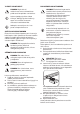 • • • • Älä kosketa kompressoriin tai lauhduttimeen. Ne ovat kuumia. Älä poista pakastimen tuotteita tai kosketa niihin, jos kätesi ovat märät tai kosteat. Älä pakasta uudelleen jo sulaneita elintarvikkeita. Noudata pakasteiden pakkauksessa olevia säilytysohjeita. HOITO JA PUHDISTUS VAROITUS! Virheellinen käyttö voi aiheuttaa henkilövahinkoja tai laitteen vaurioitumisen. • • • Kytke laite pois toiminnasta ja irrota pistoke pistorasiasta ennen ylläpitotoimien aloittamista.