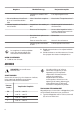 FELSÖKNING VARNING! Se säkerhetsavsnitten. OM PRODUKTEN INTE FUNGERAR... Problem Kylskåpet arbetar inte. Möjlig orsak Åtgärd Kylskåpet är avstängt. Slå på kylskåpet. Stickkontakten sitter inte ordentligt i eluttaget. Sätt i stickkontakten ordentligt i eluttaget. Eluttaget är strömlöst. Anslut en annan elektrisk apparat till eluttaget. Kontakta en behörig elektriker. Kylskåpet bullrar. Kylskåpet står ostadigt. Kontrollera om kylskåpet står stabilt. Kompressorn arbetar utan uppehåll.