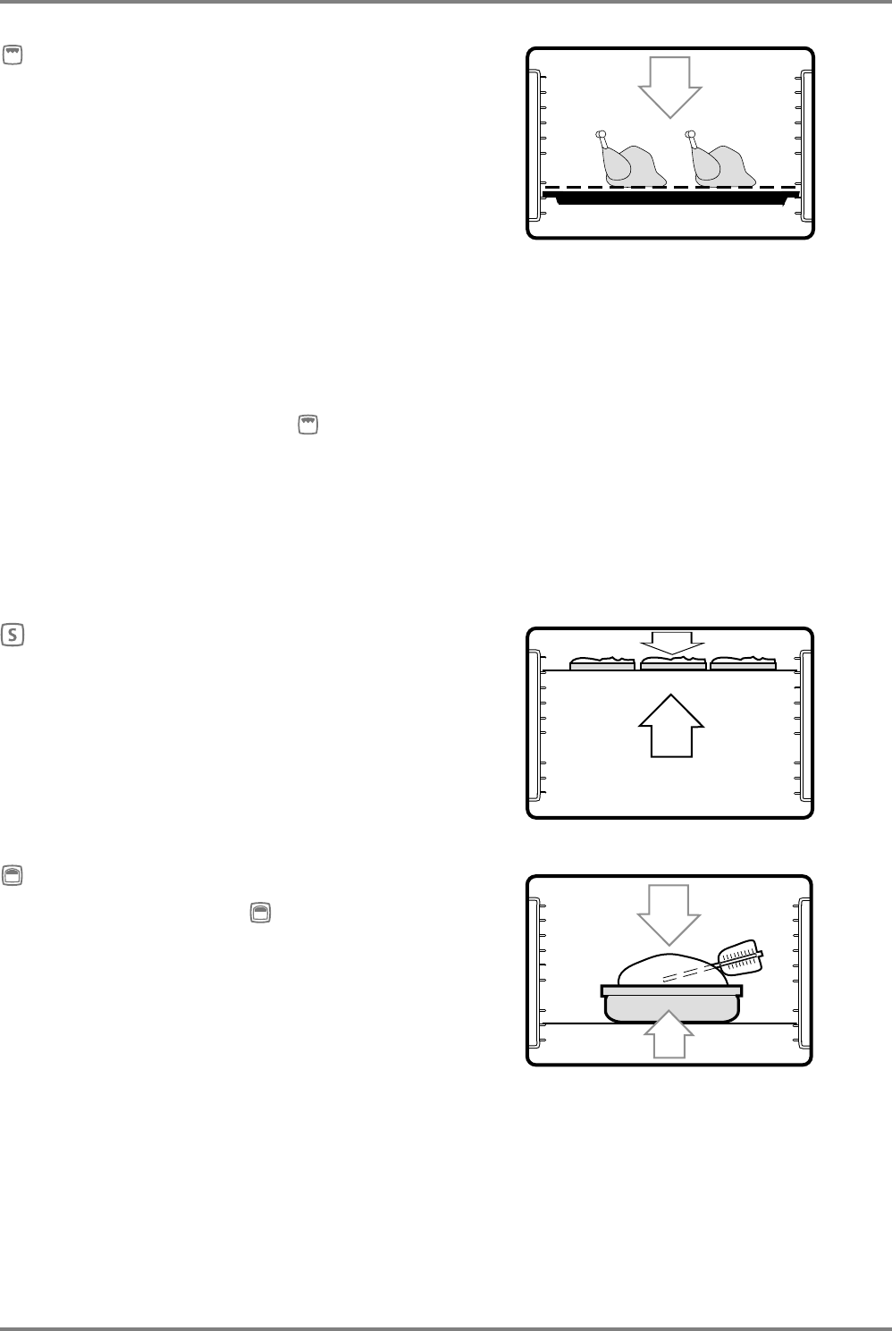 pihvit, kalafileet yms. asetetaan uunin yläosaan, kun