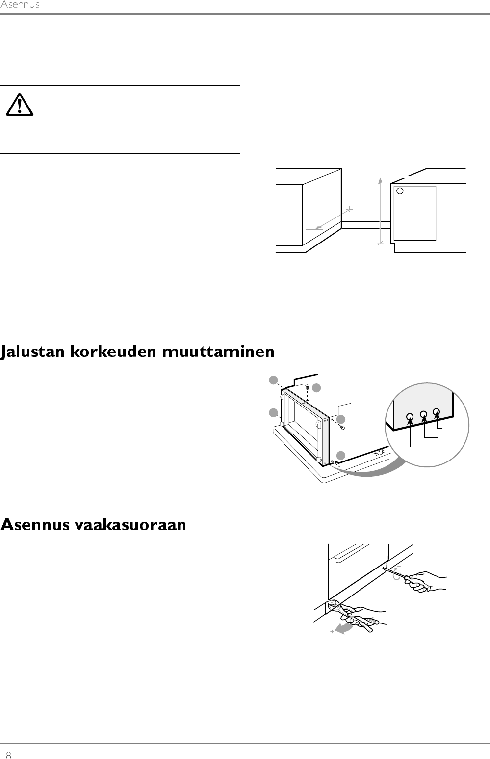 (-6, +12 mm) jalustan etupuolelta. Säädä etujalat moni-