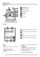 Laitteen kuvaus Laitteen osat 1 2 1 Keittotason vääntimet 2 Uunin lämpötilan väännin 4 3 Lämpötilan merkkivalo 4 Uunin toimintojen väännin 5 4 8 3 3 6 2 7 1 5 Lämpövastus 6 Uunin lamppu 7 Puhallin 8 Kannatintasot Keittoalueet 1 2 210 mm 140 mm 140 mm 180 mm 5 4 1 Induktiokeittoalue 2100 W + Power-toiminto 3700 W 2 Induktiokeittoalue 1500 W + Power-toiminto 2500 W 3 Näytöt 4 Induktiokeittoalue 1800 W + Power-toiminto 2800 W 5 Induktiokeittoalue 1400 W + Power-toiminto 2500 W 3 Varuste