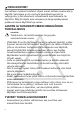 • • • • • • • • • • • • • • • • Tämä laite on tarkoitettu käytettäväksi korkeintaan 2 000 metriä merenpinnan yläpuolella. Tätä laitetta ei ole tarkoitettu käytettäväksi laivoissa, veneissä tai aluksissa. Laitetta ei saa asentaa kalusteoven taakse, jotta se ei ylikuumenisi. Älä asenna laitetta tason päälle. Älä käytä tätä laitetta ulkoisella ajastimella tai erillisellä kaukosäädinjärjestelmällä. VAROITUS: Rasvalla tai öljyllä kypsentäminen ilman valvontaa voi olla vaarallista ja se voi johtaa tulipaloon.