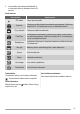 Livsmedelstyper för torkning Temperatur °C Nivå Nivåer Tid i timmar (rekommenderat) Bönor 60-70 3 1–4 6-8 Paprika (skuren i strimlor) 60-70 3 1–4 5-6 Soppgrönsaker 60-70 3 1–4 5-6 Champinjoner 50-60 3 1–4 6-8 Örter 40-50 3 1–4 2-3 Temperatur °C Nivå Nivåer Tid i timmar (rekommenderat) Katrinplommon 60-70 3 1–4 8-10 Aprikoser 60-70 3 1–4 8-10 Äppelklyftor 60-70 3 1–4 6-8 Päron 60-70 3 1–4 6-9 Frukter Livsmedelstyper för torkning Avfrostning • Ta ut maten