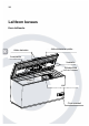 24 Laitteen kuvaus Kuva laitteesta Jääkuutiokotelo Jääkuutiokotelon pidike Ilmanpoisto Ilmanotto Kylmäyksikkö Lamppu Kori Ohjauspaneeli