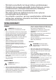 • • • • Älä käytä vesisuihketta tai höyryä laitteen puhdistamiseen. Puhdista laite kostealla pehmeällä liinalla. Käytä vain mietoja puhdistusaineita. Älä käytä hankausainetta, hankaavia pesulappuja, liuottimia tai metalliesineitä. Älä säilytä laitteessa räjähtäviä aineita, kuten syttyvien ponneaineiden aerosolipulloja. Jos virtajohto vaurioituu, sen saa vaaratilanteiden välttämiseksi vaihtaa vain valmistaja, valtuutettu huoltoliike tai vastaava ammattitaitoinen henkilö.