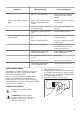 Ongelma Laitteessa on liikaa huurretta ja jäätä. Laitteen lämpötila on liian alhainen tai korkea. Mahdollinen syy Korjaustoimenpide Kansi ei ole kunnolla kiinni. Tarkista, että kansi sulkeutuu kunnolla ja tiiviste on ehjä ja puhdas. Kantta ei ole suljettu oikein tai tiiviste on epämuodostunut/ likainen. Katso osio "Kannen avaaminen ja sulkeminen". Veden poistoputken tulppaa ei ole asetettu oikein. Aseta veden poistoputken tulppa oikein. Lämpötila on asetettu virheellisesti.